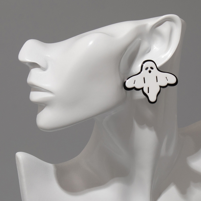 Серьги акрил «Привидения» пугающие, цвет чёрно-белый в серебре