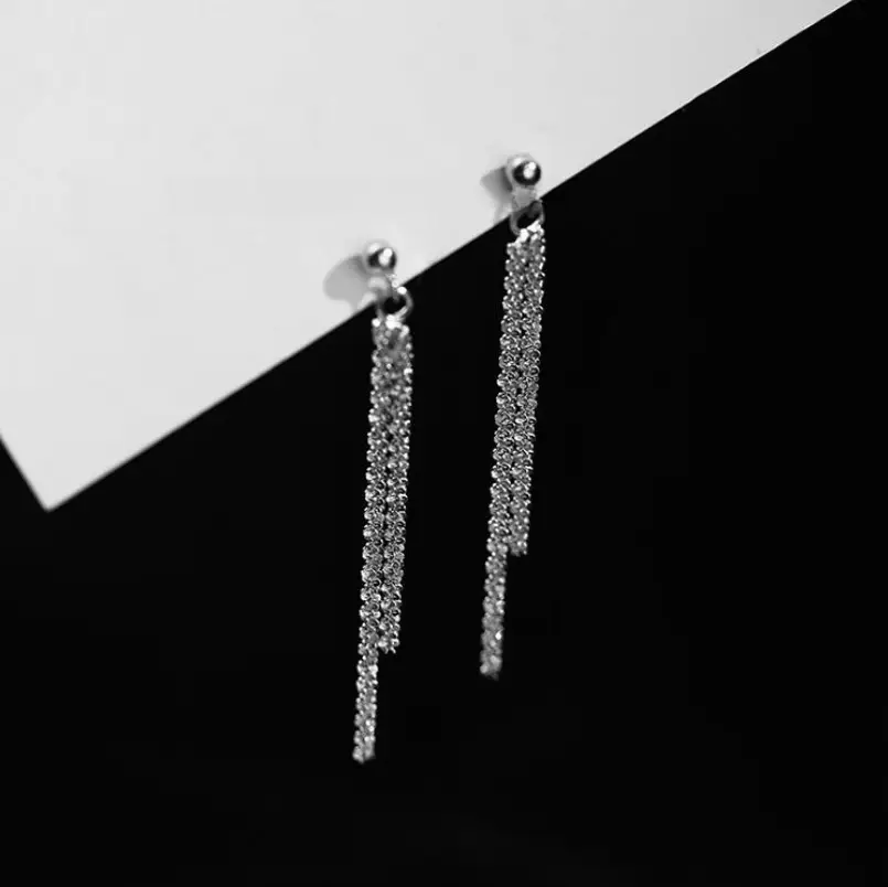 Серьги висячие со стразами «Водопад» прямые нити, цвет белый в серебре, 11,5 см