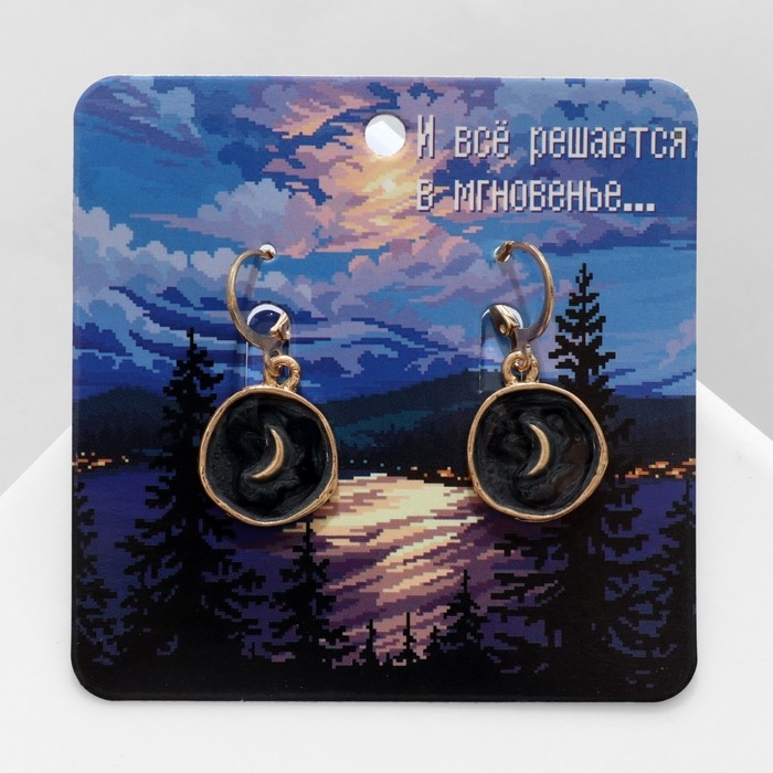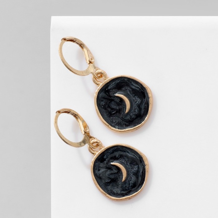 Серьги эмаль «Искусство» полумесяц, цвет чёрный в золоте
