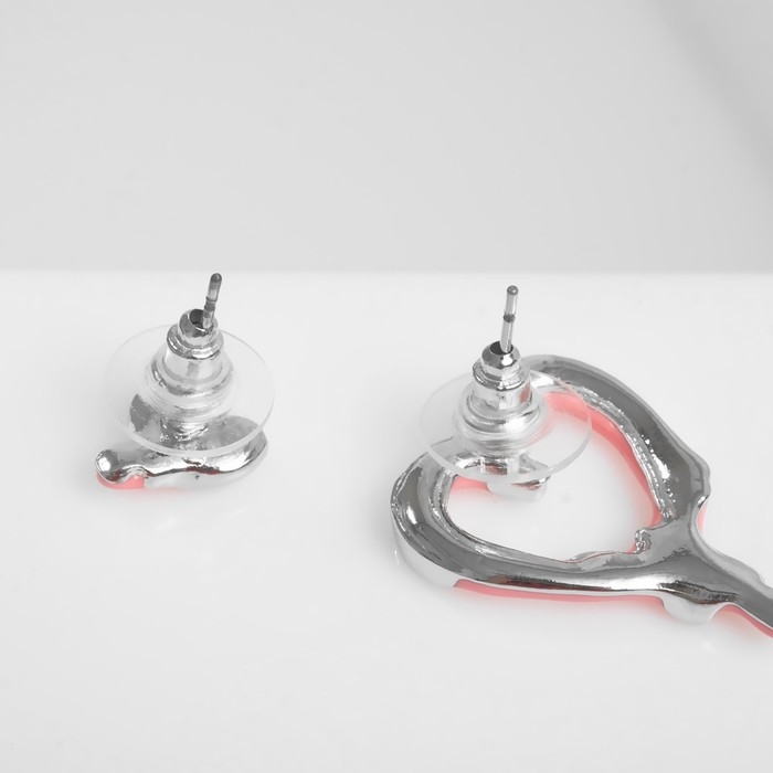 Серьги эмаль «Таяние» сердечки, цвет розовый в серебре
