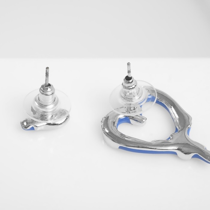 Серьги эмаль «Таяние» сердечки, цвет синий в серебре