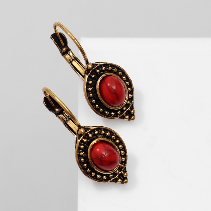 Серьги «Этника» мрамор, цвет красный в чернёном золоте