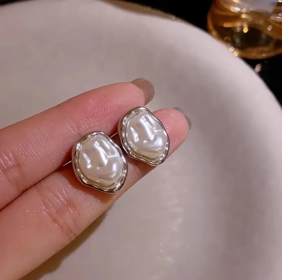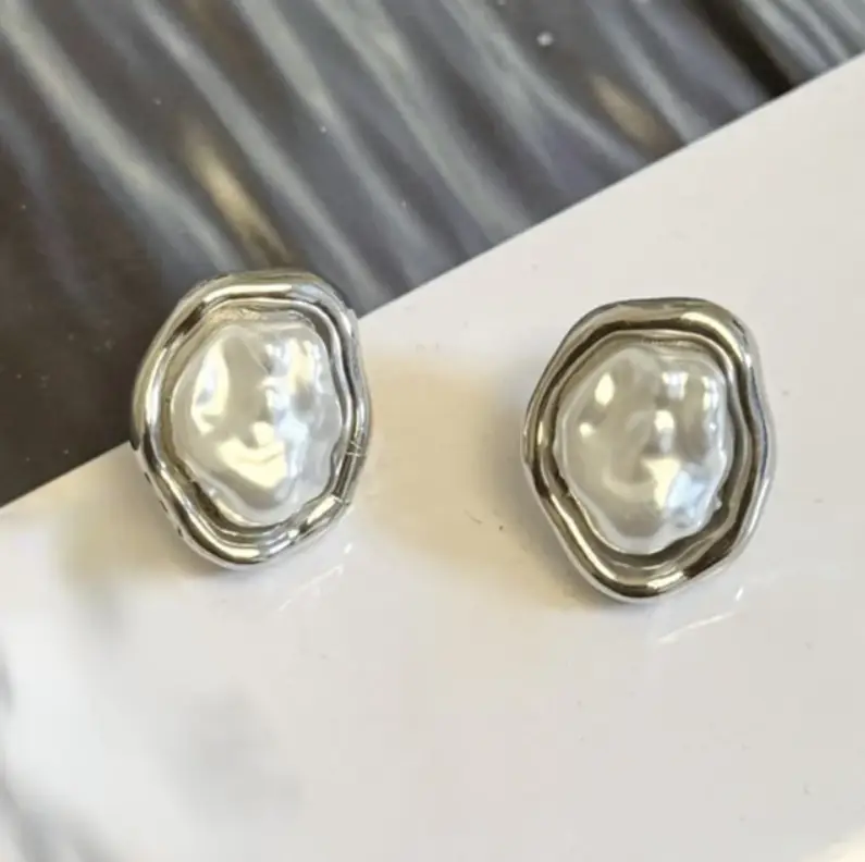 Серьги-гвоздики с искусственным жемчугом серебристые