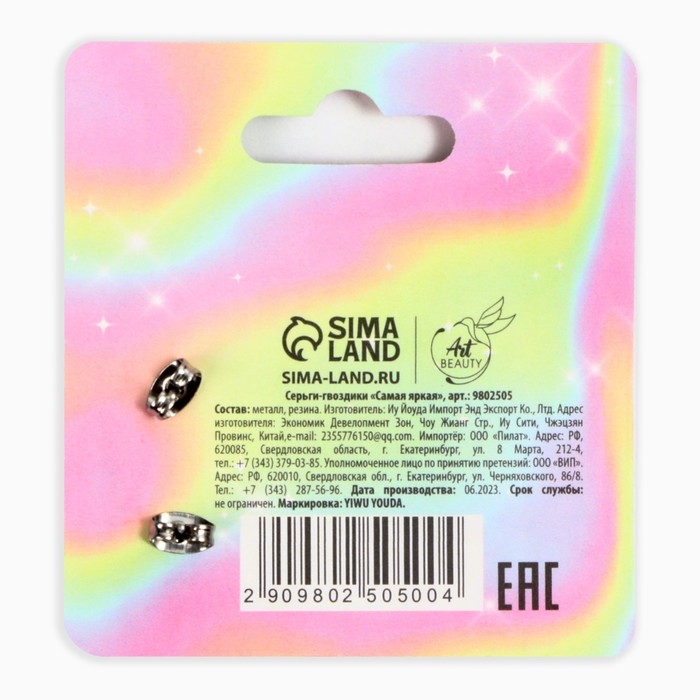 Серьги гвоздики «Самая яркая» 6 х 6,5 см