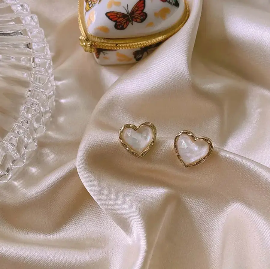 Серьги гвоздики Сердечки перламутровые золотистые