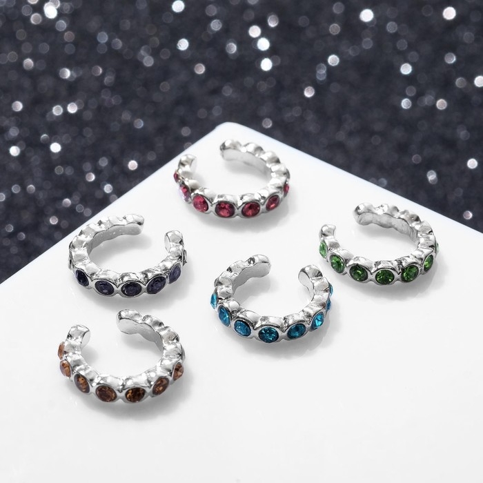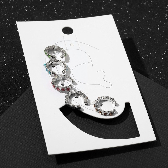 Серьги «Каффы» манжеты, набор 5 шт., цветные в серебре