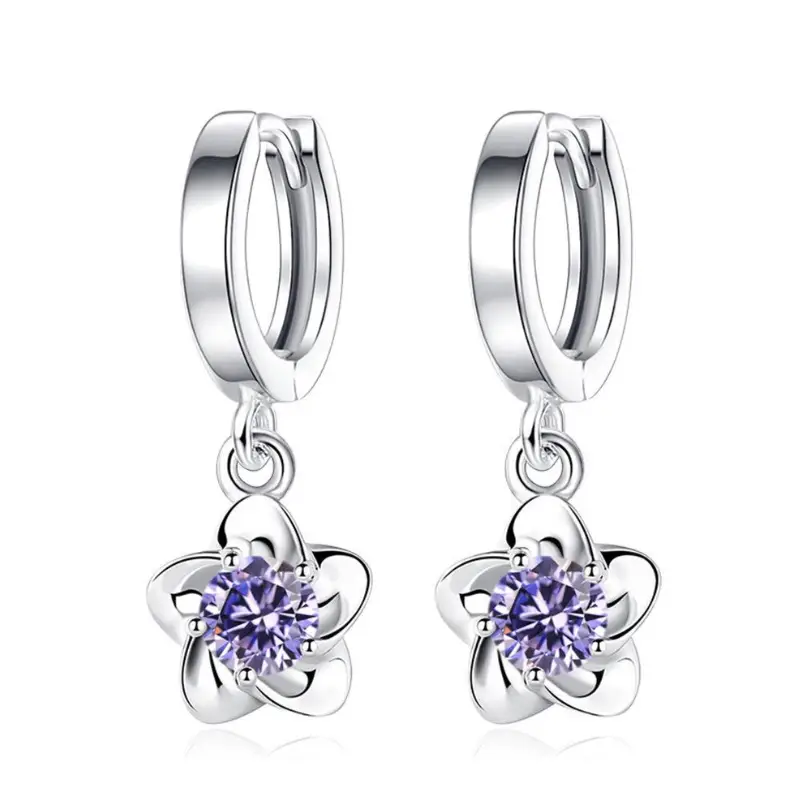 Серьги колечки с цветком серебристые