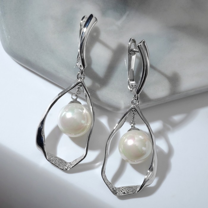 Серьги «Майорка» абстракция, цвет белый в серебре