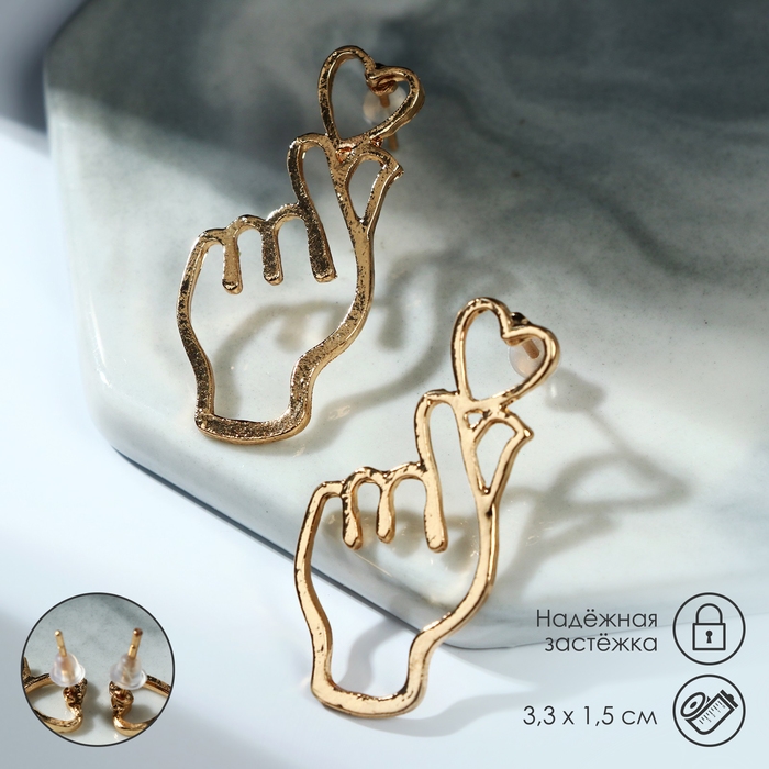 Серьги металл «Пальчики» сердечко, цвет золото