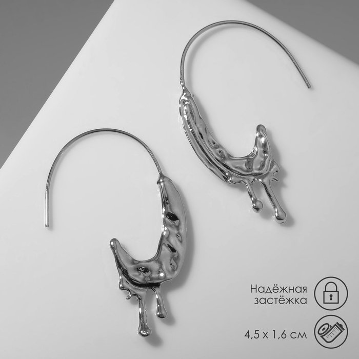 Серьги металл «Тренд» таяние, цвет серебро