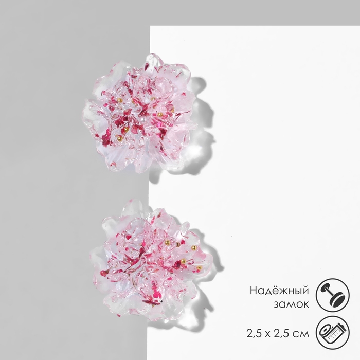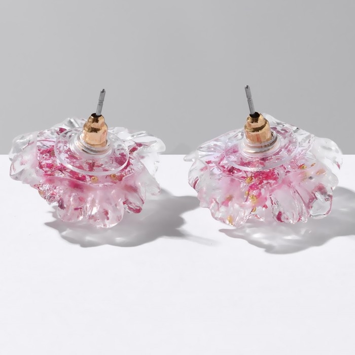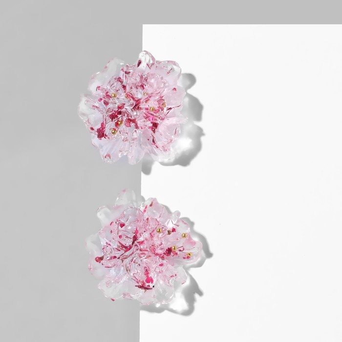 Серьги пластик «Цветы» волнистые, цвет бело-розовый