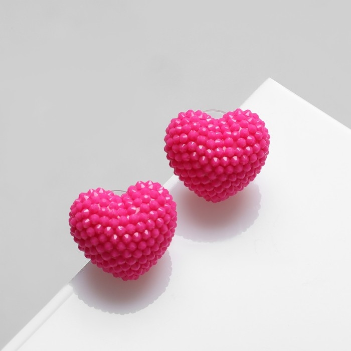 Серьги пластик «Карамель» сердце, цвет ярко-розовый