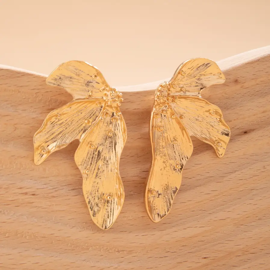 Серьги пусеты Цветы крупные золотистые