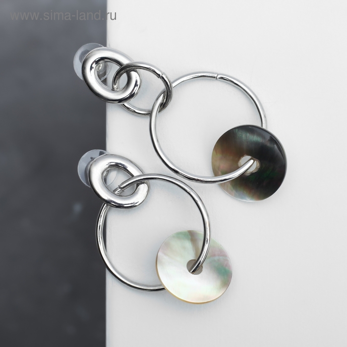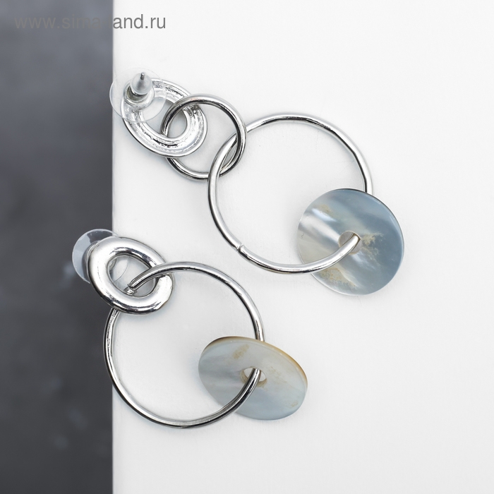 Серьги с перламутром "Градиент" колечки, цвет бежево-серебряный