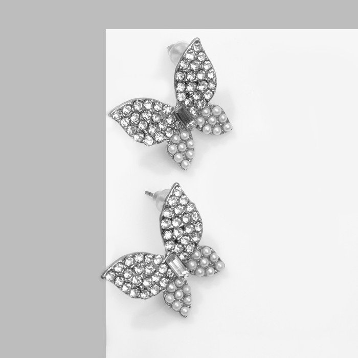 Серьги с жемчугом «Бабочки» нежные, цвет белый в серебре