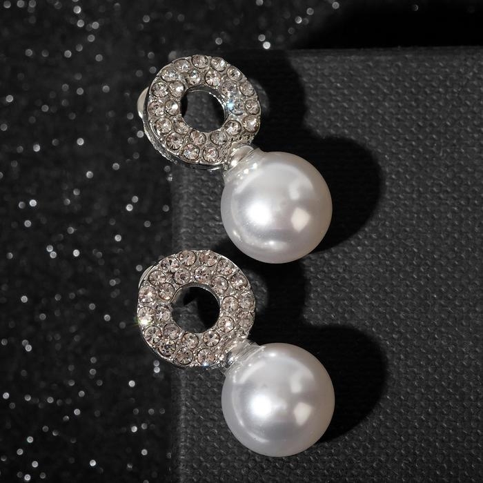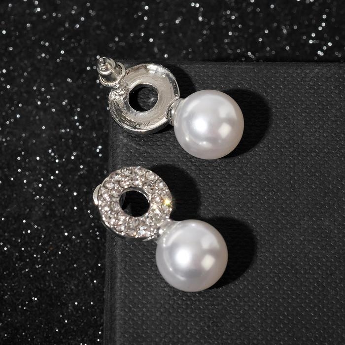 Серьги с жемчугом «Грейс» на колечке, цвет белый в серебре