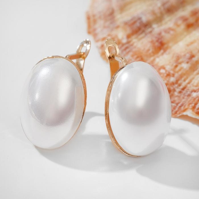 Серьги с жемчугом «Грейс» вытянутый овал, цвет белый в золоте