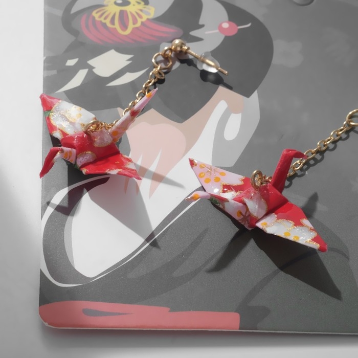 Серьги с жемчугом «Япония» яркое оригами, цветные в золоте
