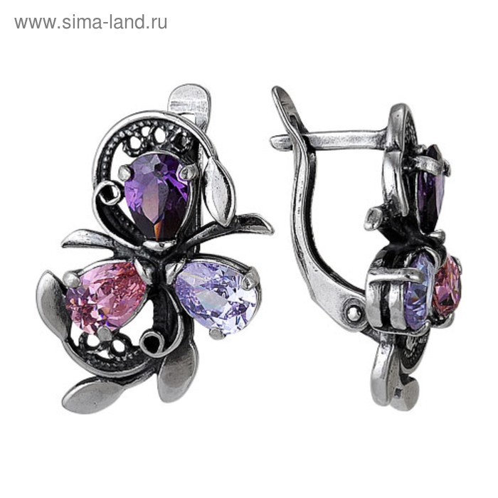 Серьги «Самоцвет», посеребрение с оксидированием, цвет сиреневый