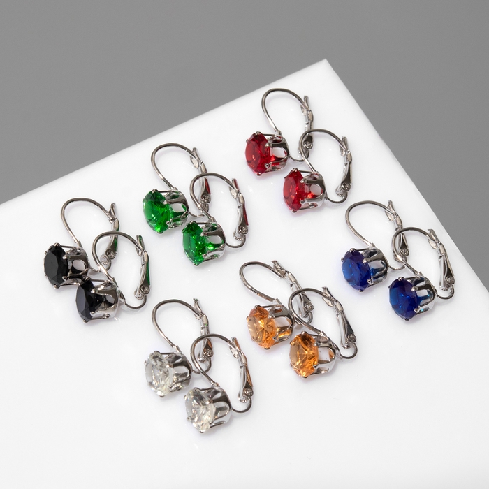 Серьги со стразами «Конфетти» каникулы круг, цвет МИКС в серебре