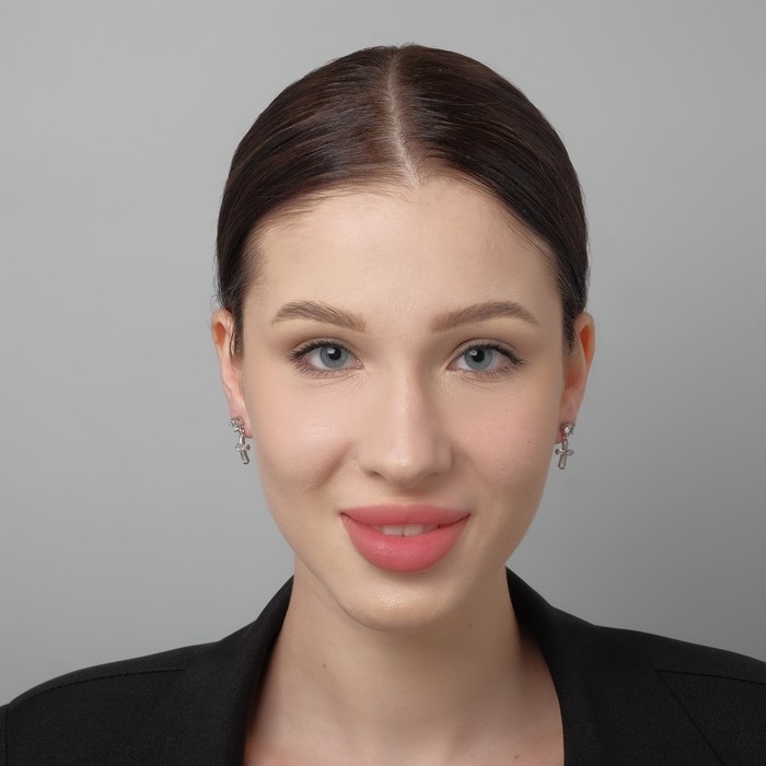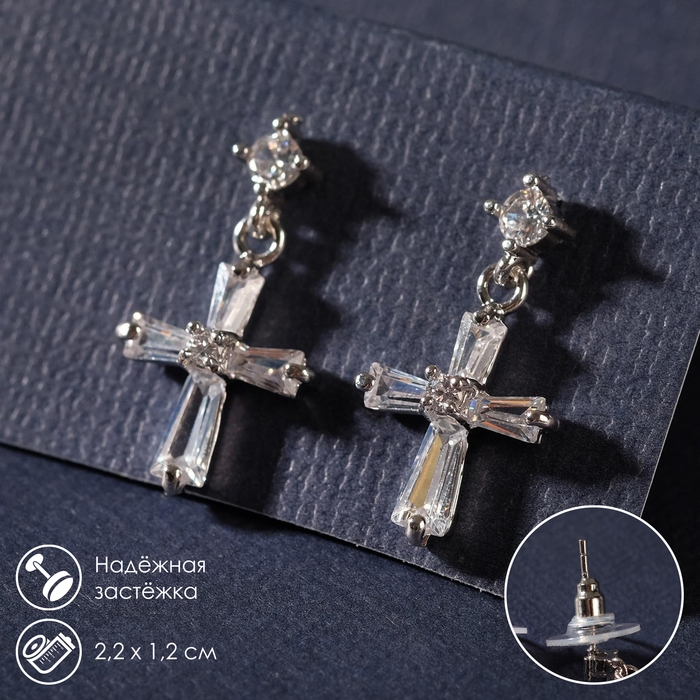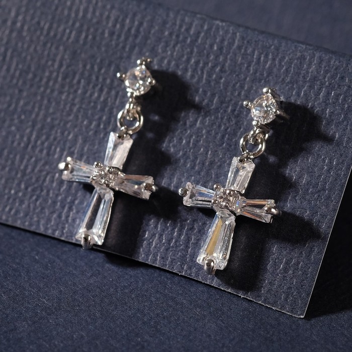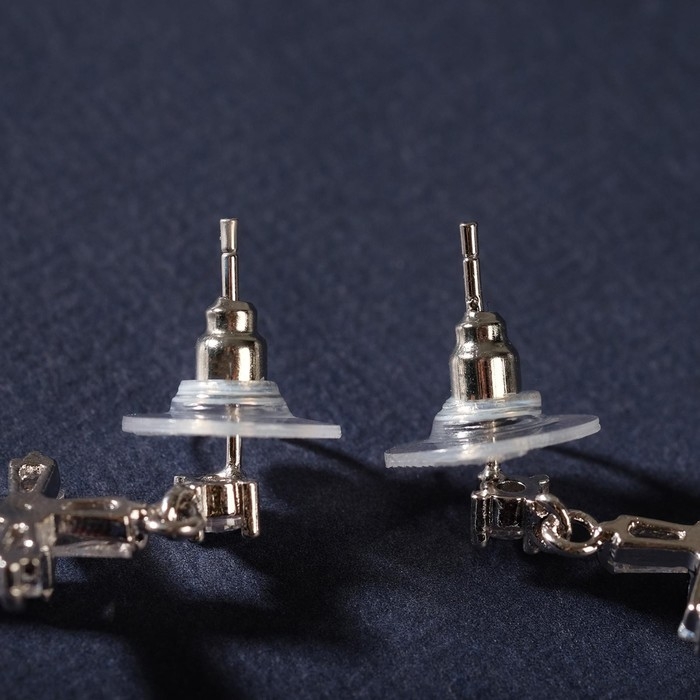 Серьги со стразами «Крестики искры» с пусетом, цвет белый в серебре