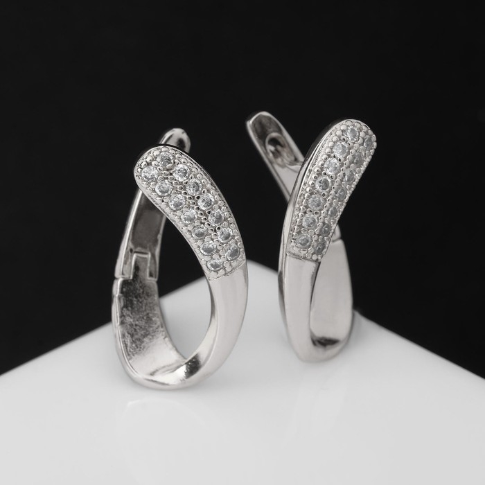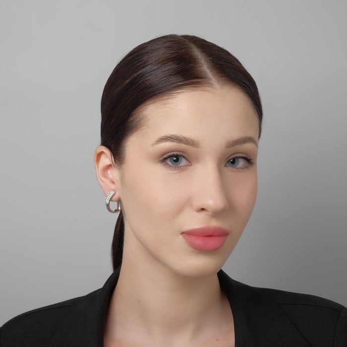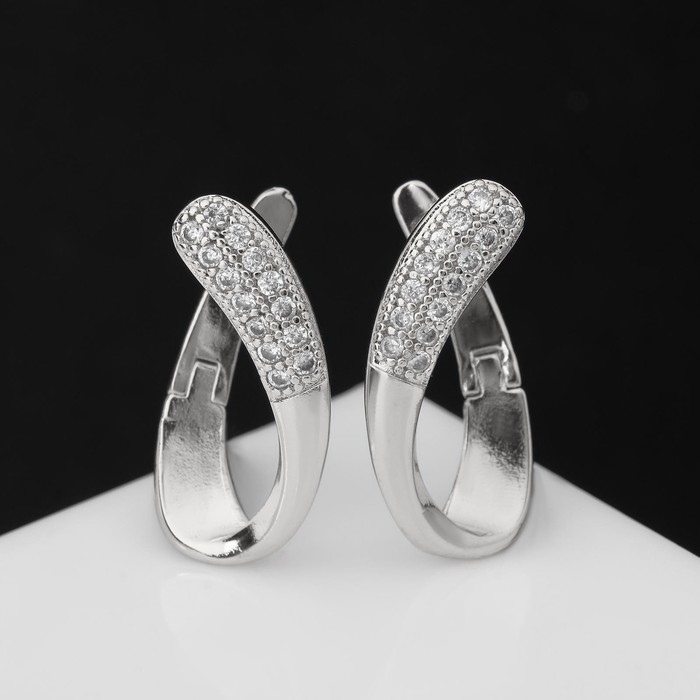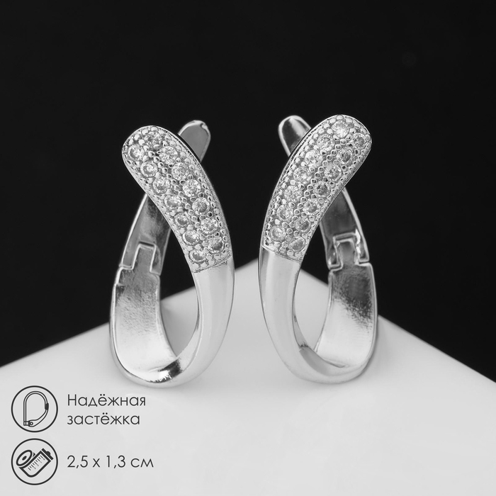 Серьги со стразами «Магия» завиток, цвет белый в серебре
