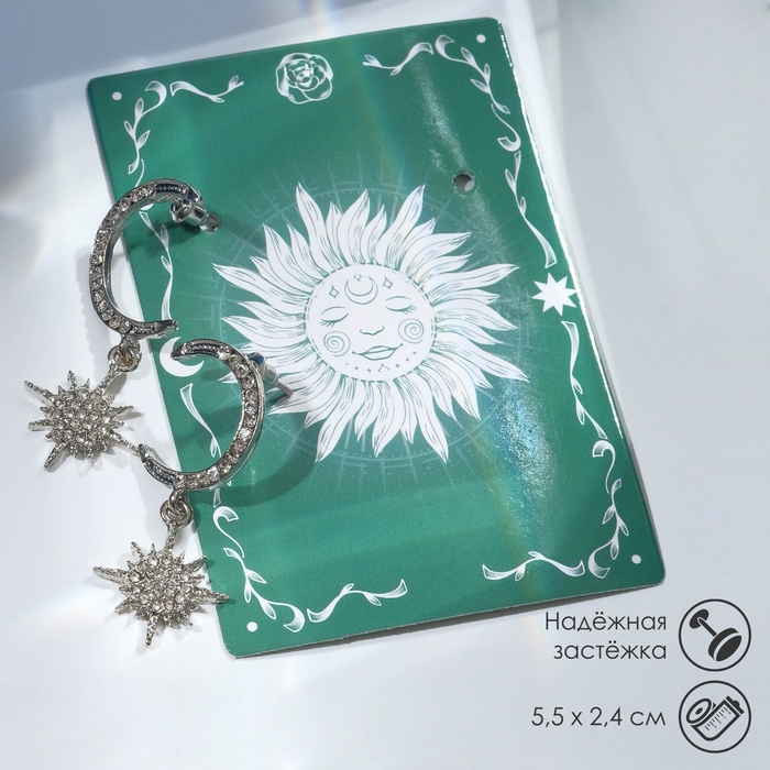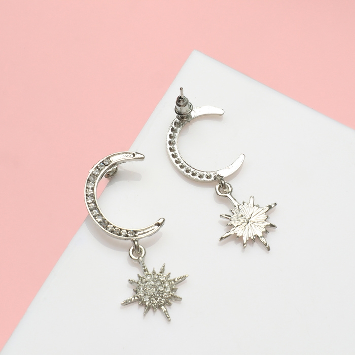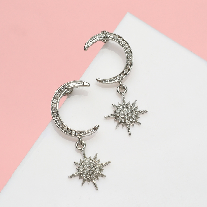Серьги со стразами «Полумесяц и звезда» ослепительные, цвет белый в серебре