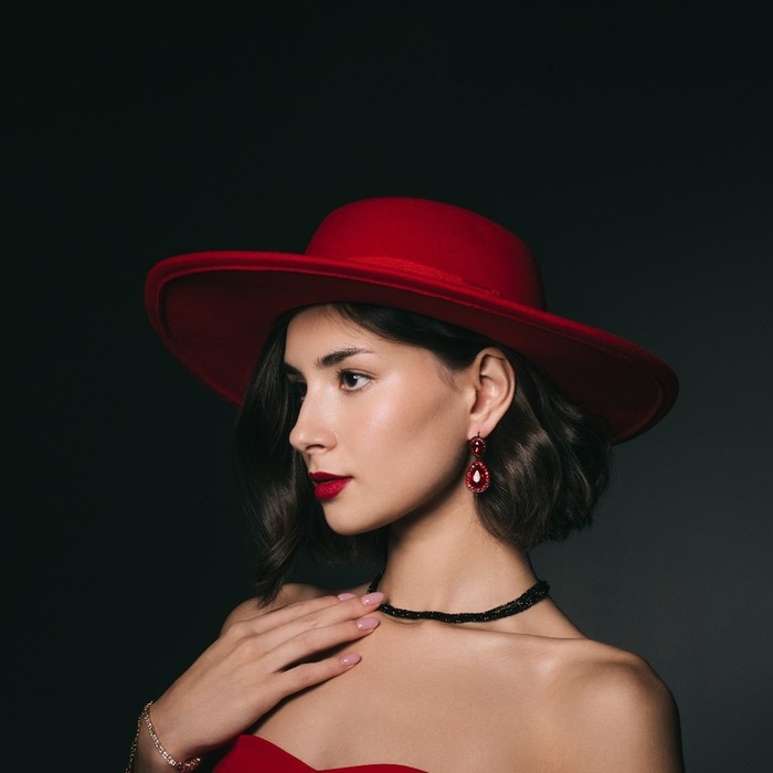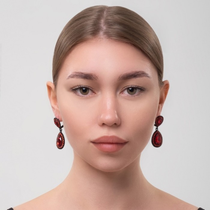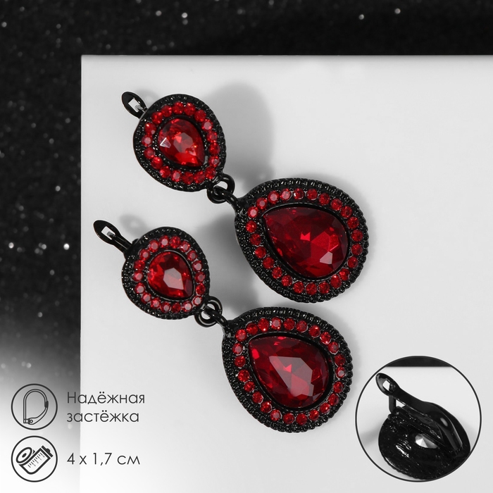 Серьги со стразами «Вечерние» дама, цвет бордовый в чёрном металле