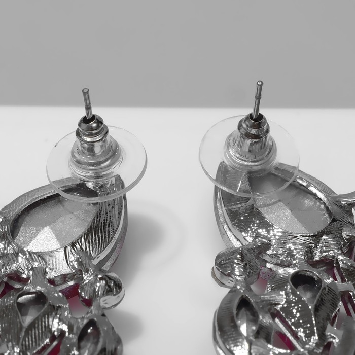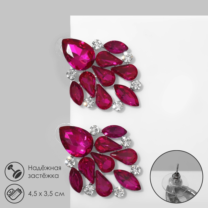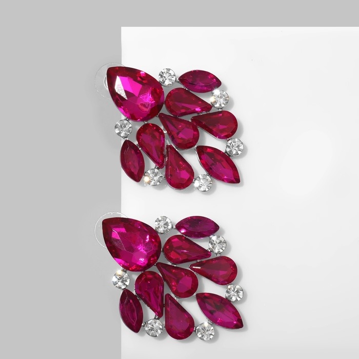 Серьги со стразами «Вспышка» капли, цвет малиново-белый в серебре