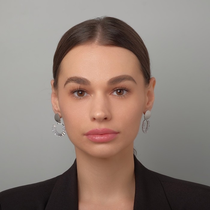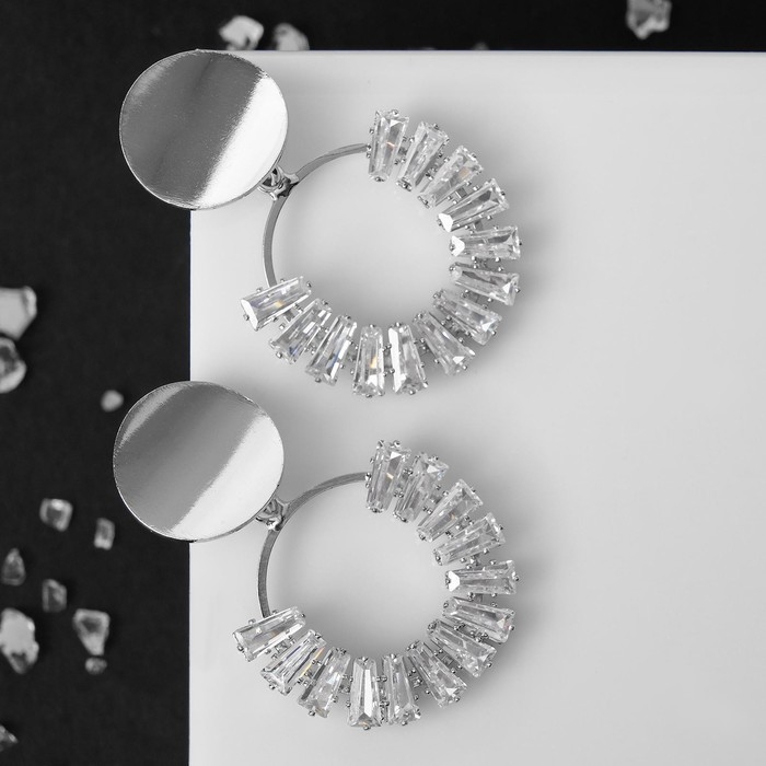 Серьги со стразами «Вспышка» круг, цвет белый в серебре