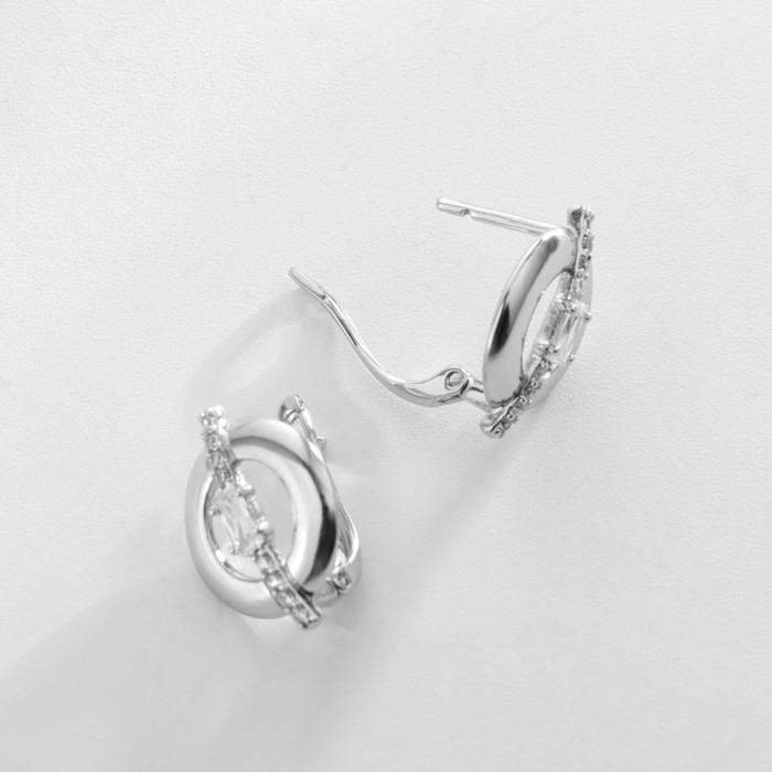 Серьги со стразами «Яркая классика» в обрамлении, цвет белый в серебре, d=1,4 см