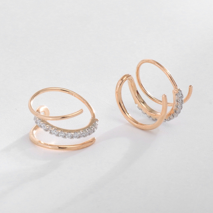 Серьги со стразами XUPING спираль созидания, цвет белый в розовом золоте