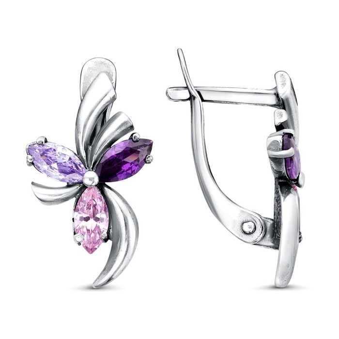 Серьги «Вихрь» цветок, посеребрение с оксидированием, цвет фиолетовый