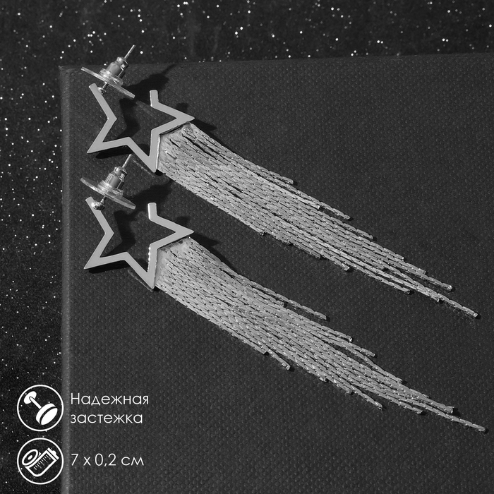 Серьги висячие «Дождь» звезда, цвет серебра, 7 см