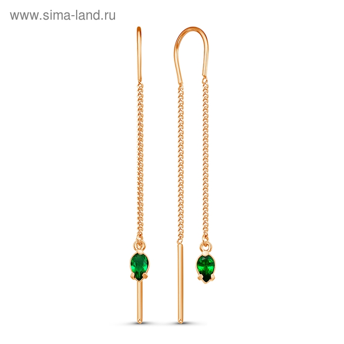 Серьги висячие «Капелька», розовое золочение, цвет зелёный