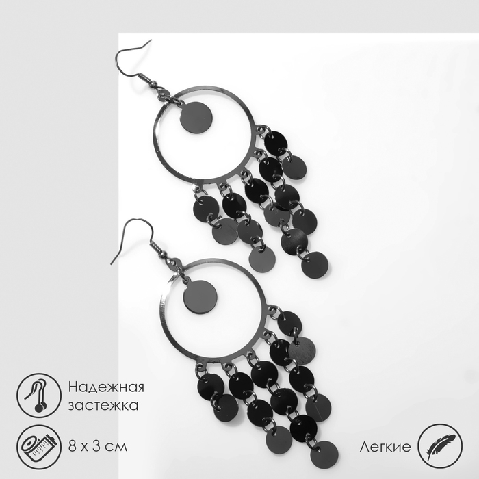 Серьги висячие «Круги» на кольцах, цвет серый металл, 8 см