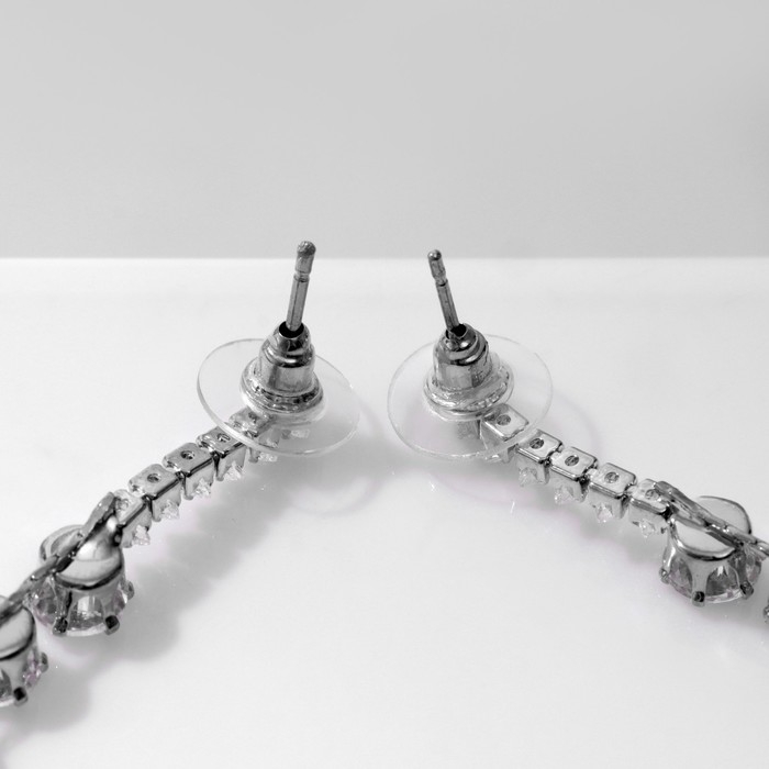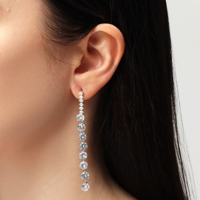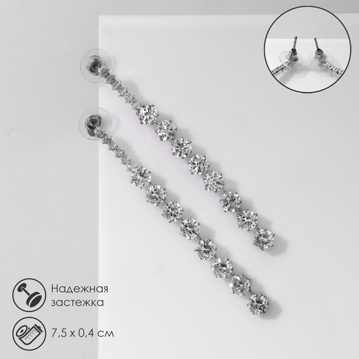 Серьги висячие со стразами «Дорожка» кругов, цвет белый в серебре, 7,5 см