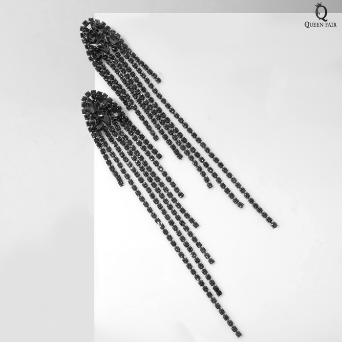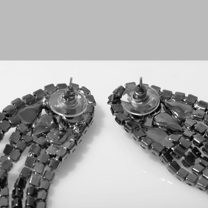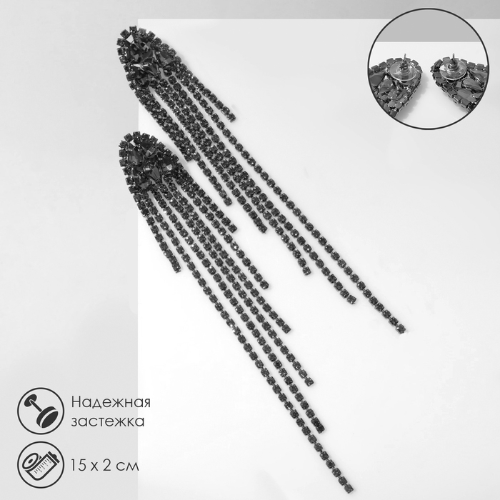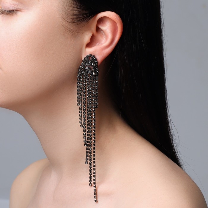 Серьги висячие со стразами «Голливуд» нити на кристаллах, цвет серый в сером металле, 15 см