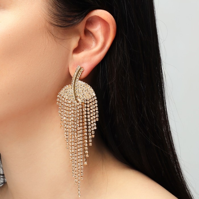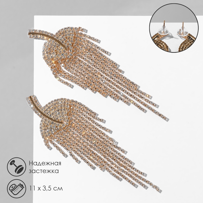Серьги висячие со стразами «Грация» лесенка, цвет белый в золоте, 11 см