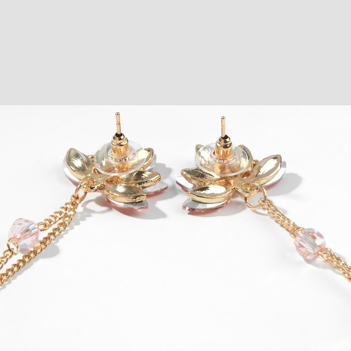 Серьги висячие со стразами «Рассвет» цветочный, цвет розово-белый в золоте, 11,5 см