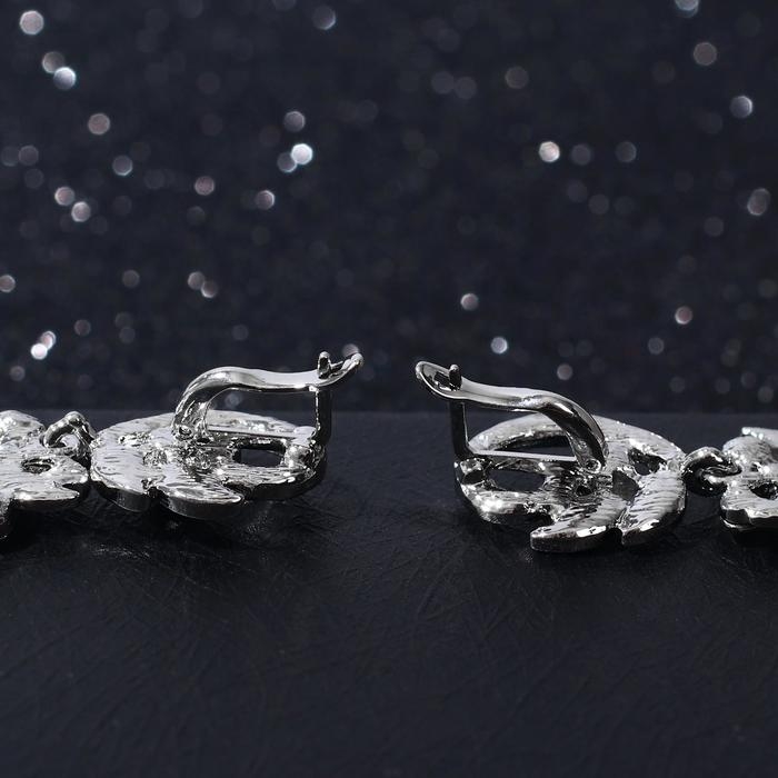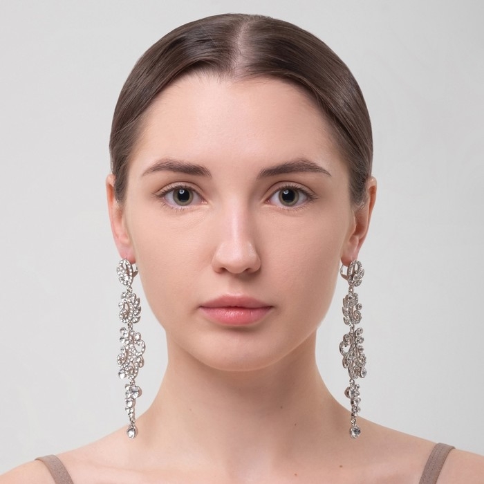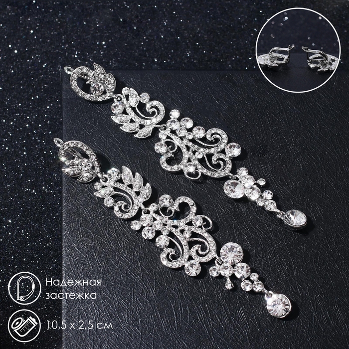 Серьги висячие со стразами «Вечерние» цветение, цвет белый в серебре, 10,5 см
