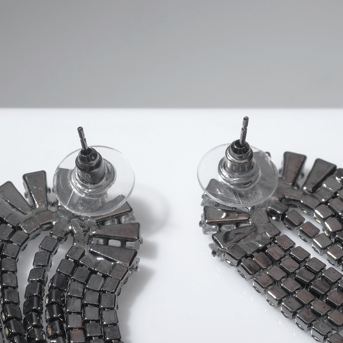 Серьги висячие со стразами «Капли» дорожка, цвет чёрный в серебре, 6,2 см