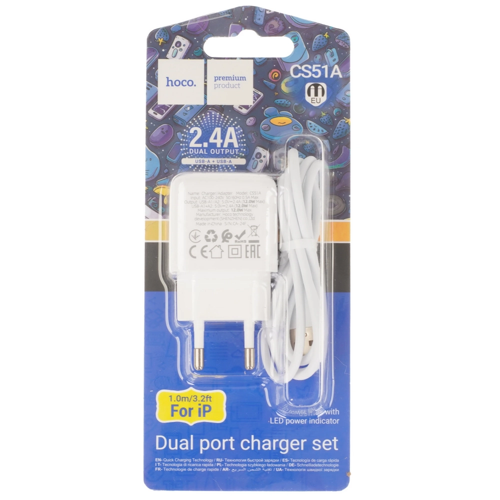 HOCO CS51A — компактное сетевое зарядное устройство с lightning-кабелем