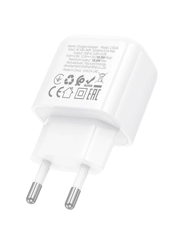 Сетевое зарядное устройство универсальное с USB выходом 3000mA HOCO CS52A QC3.0 18W белый – это современное и надежное зарядное устройство, разработанное для быстрой и эффективной зарядки всех типов мобильных устройств. Оно станет отличным помощником как в домашних условиях, так и в офисе или во время поездок.