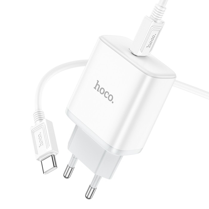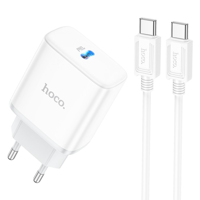 Сетевое зарядное устройство Hoco C104A, 1 Type-C, кабель Type-C - Type-C, 1 м, белое