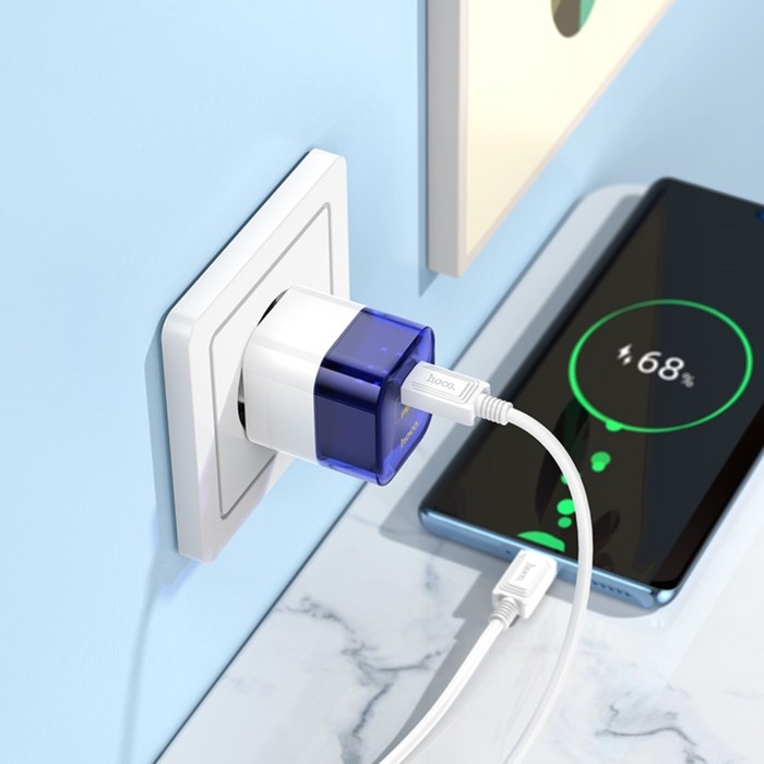 Сетевое зарядное устройство Hoco C125A, Type-C, 20 Вт, прозрачное, Type-C - Type-C, синий
