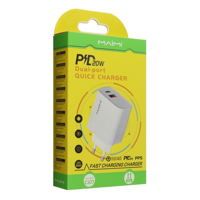 Сетевое зарядное устройство Maimi C107, USB, 3 А, Type-C, 3 А, 20 Вт, PD, белое