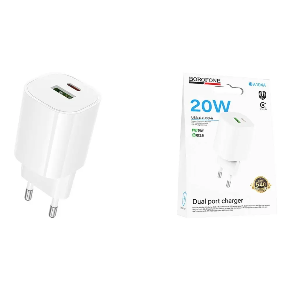 Сетевое ЗУ BOROFONE BA104A (USB QC3.0/PD 20W) белое