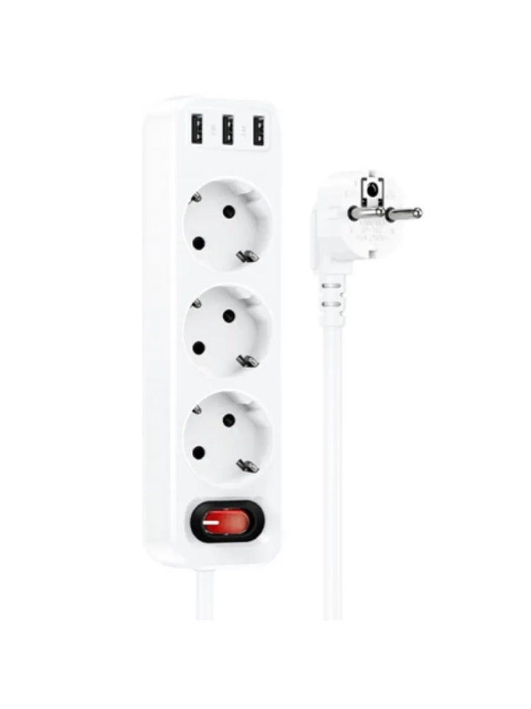 Сетевой фильтр Hoco NS2 White 3 гнезда плюс 3USB