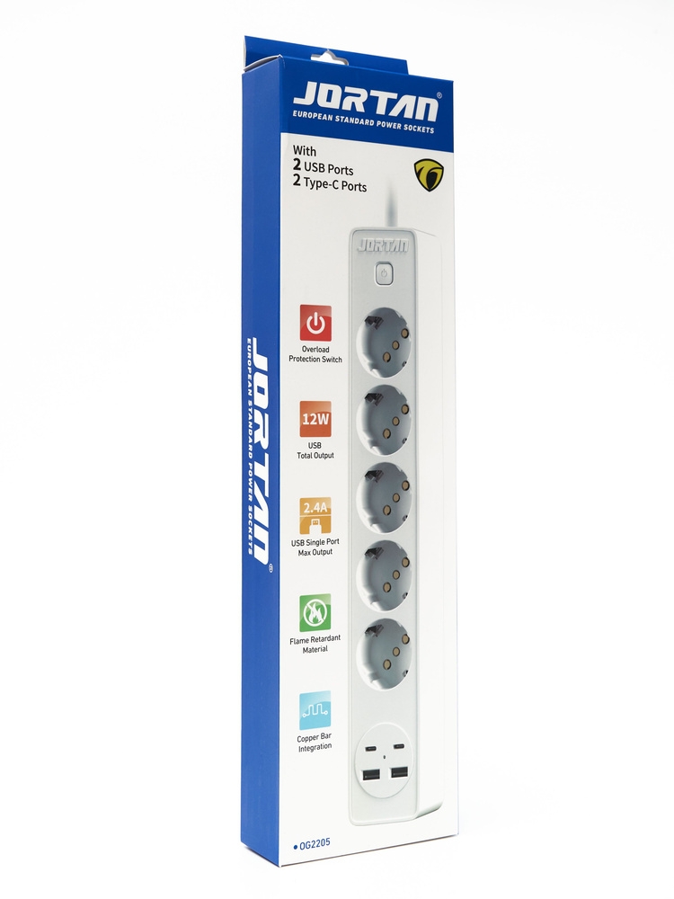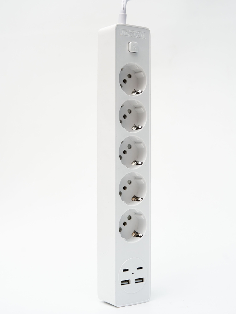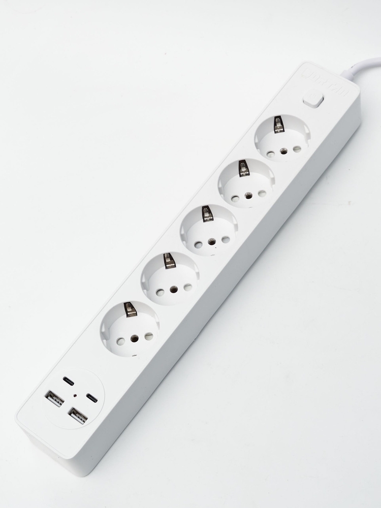 Удлинитель сетевой фильтр с USB 5 розеток и 2 USB, 2 type C, кабель 3м, 2500 Вт c быстрой зарядкой, с предохранителем, с единым выключателем